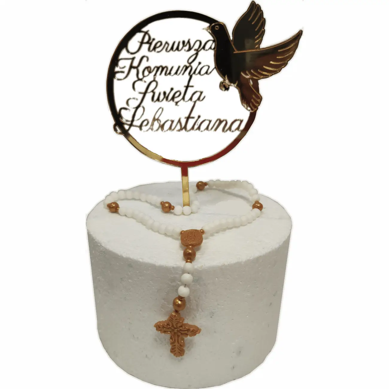 Pragniemy przedstawić “Różaniec z masy cukrowej”, który stanowi nie tylko symbol wiary, ale także wyjątkową dekorację na tort z okazji Pierwszej Komunii Świętej. Ten delikatnie wykonany różaniec, zdobiony bielą i złotem, wprowadza na świąteczny stół atmosferę podniosłości i celebracji.